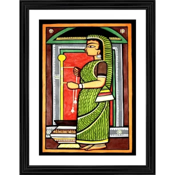 Generic Pujaran Painting With Wood Photo Frame (Multicolor)