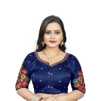 Generic Women’s Malai Silk Floral Readymade Blouse (Navy Blue, Size: Free Size)