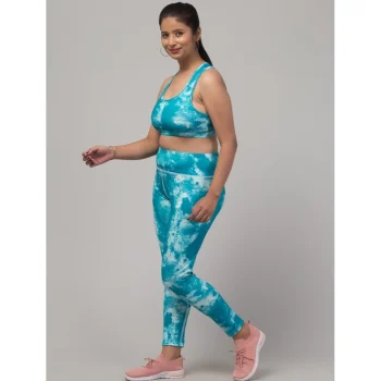 Generic Women’s Polyester Spandex Printed Ankle Length High Rise Slip On Tights and Bra Set (Blue)