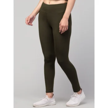 Generic Women’s Polyester Solid Ankle Length High-Rise Tights (Olive)