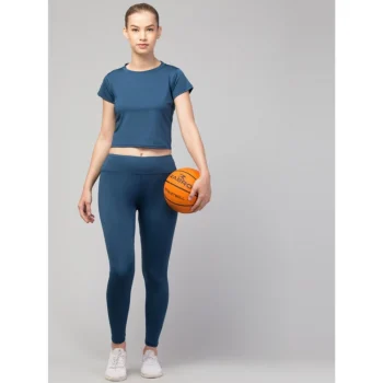 Generic Women’s Polyester Solid Ankle Length High-Rise Tights (Teal)