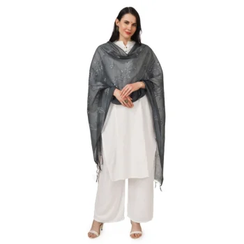 Generic Women’s Cotton Embroidered Dupatta (Grey, Length: 2.25 to 2.50 Mtr)
