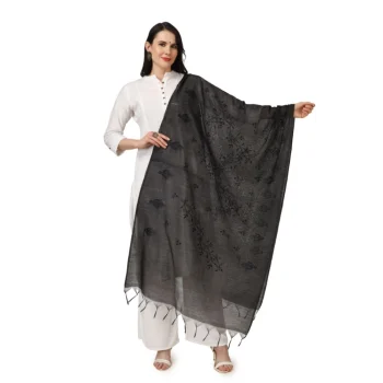 Generic Women’s Cotton Embroidered Dupatta (Black, Length: 2.25 to 2.50 Mtr)