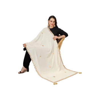 Generic Women’s Velvet Gotta Patti Dupatta (Off White, Length: 2.25 to 2.50 Mtr)