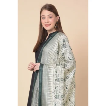 Generic Women’s Art Silk Printed Dupatta (Grey, Length: 2.25 to 2.50 Mtr)
