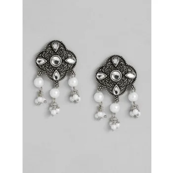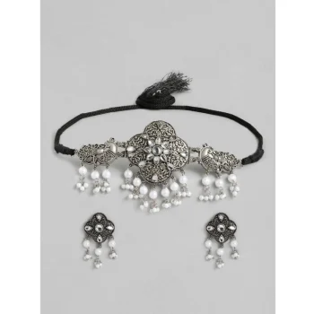 Generic Women’s Rose Gold Plated Alloy Necklace & Earings Set (Silver & White)