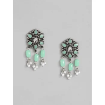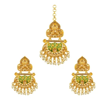 Generic Women’s Rose Gold Plated Alloy Kundan Earrings & Mangtikka (Green)