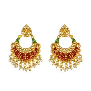 Generic Women’s Rose Gold Plated Alloy Kundan Earrings & Mangtikka (Red & Green)
