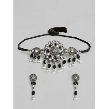 Generic Women’s Rose Gold Plated Alloy Necklace & Earings Set (Black)