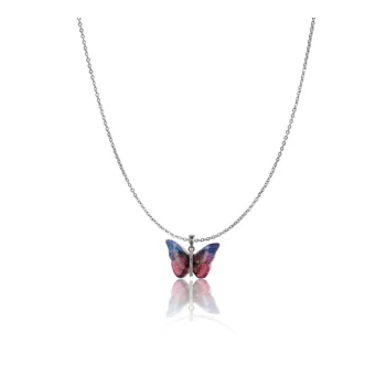 Generic Women’s Stainless Steel Colorful Butterfly Pendent Dailywear chain (Silver Plated)