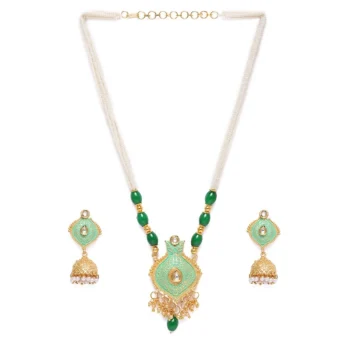 Generic Women’s Rose Gold Plated Alloy Kundan Earrings & Mangtikka (Green)