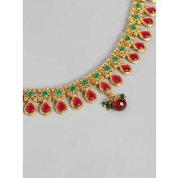 Generic Women’s Rose Gold Plated Alloy Hip Belt Kamarband (Red & Green)
