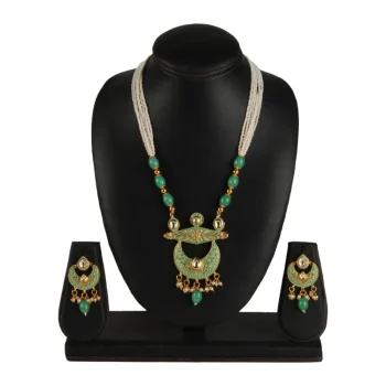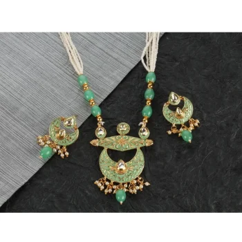 Generic Women’s Rose Gold Plated Alloy Necklace & Earings Set (Light Green)