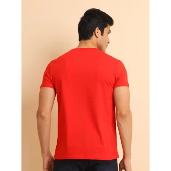 Generic Men’s Casual Cotton Printed Round Neck Half Sleeve T-Shirt (Red)