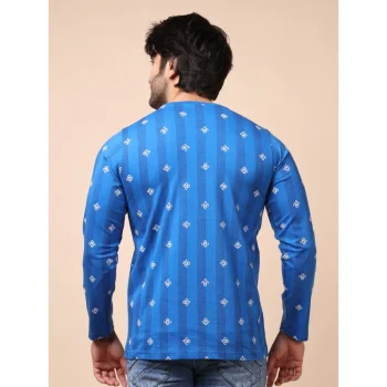 Generic Men’s Casual Cotton Printed Round Neck Full Sleeve T-Shirt (Blue)