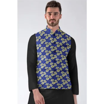 Generic Men’s Jacquard Printed Full Sleeve Waistcoat (Blue)