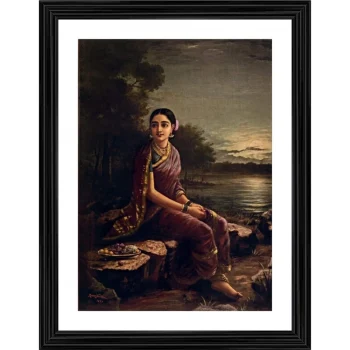 Generic Shakuntala 1880 Painting With Wood Photo Frame (Multicolor)