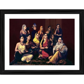 Generic Five Women Painting With Wood Photo Frame (Multicolor)