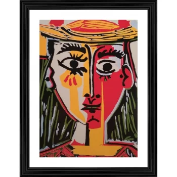 Generic Head of a Woman in a Hat 1962 Painting With Wood Photo Frame (Multicolor)
