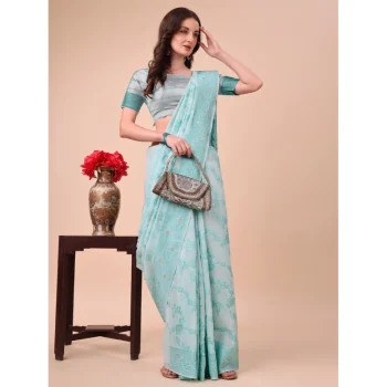 Generic Women’s Cotton Silk Printed Saree With Unstitched Blouse 5.5Mtr (Sky Blue)