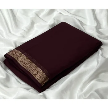 Generic Women’s Crepe Chit Pallu Solid Saree With Unstitched Blouse 5.5Mtr (Brown)