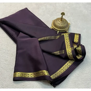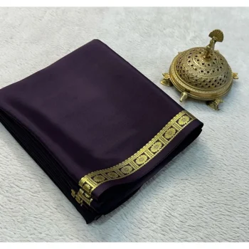 Generic Women’s Crepe Chit Pallu Solid Saree With Unstitched Blouse 5.5Mtr (Dark Purple)