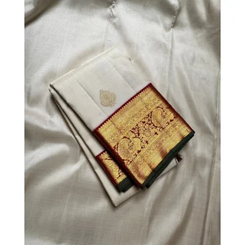 Generic Women’s Silk Printed Saree With Unstitched Blouse 5.5Mtr (Off White-Red)