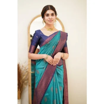 Generic Women’s Silk Printed Saree With Unstitched Blouse 5.5Mtr (Blue)