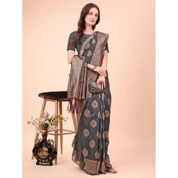 Generic Women’s Cotton Jute Self Design Saree With Unstitched Blouse 5.5Mtr (Grey)