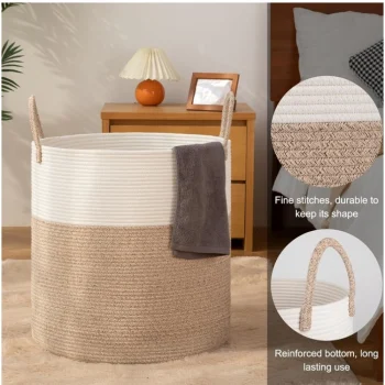 Generic Cotton 16×14 Inch Pack of 1 Storage Basket For Clothes (Beige-White)