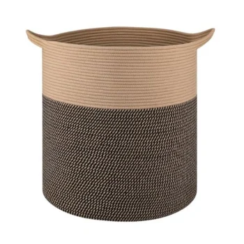 Generic Cotton 16×14 Inch Pack of 1 Storage Basket For Clothes (Beige- Beige Black)