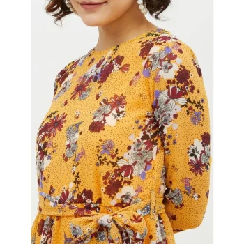 Generic Women’s Polyester Floral Long Sleeves Calf-length Dress (Multicolor)