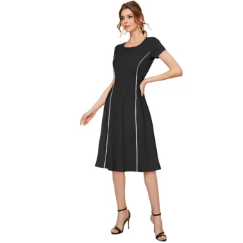 Generic Women’s Knitting stretchable Solid Round Neck Cap Sleeve Dress (Black)