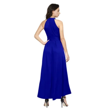 Generic Women’s Polyster Solid Halter Neck Sleeveless Dress (Royal Blue)