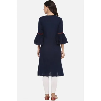 Generic Women’s Casual Rayon 3-4th Sleeves Kurti (Blue)