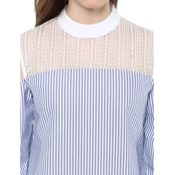 Generic Women’s Cotton Striped Cold Shoulder Top (Blue)