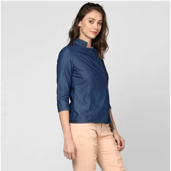 Generic Women’s Denim Solid 3-4th Sleeves Standard Length Shirt (Blue)