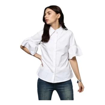 Generic Women’s Cotton Solid Bell Sleeve Top (White)