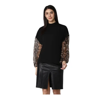 Generic Women’s Polyester Animal Print Long Sleeves Top (Black)