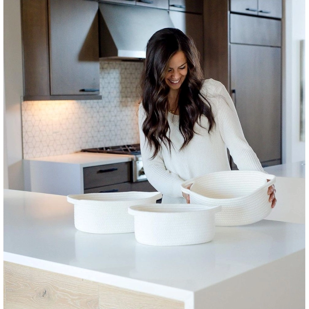 Cotton Oval Basket Pack of 3 Storage Basket For Clothes