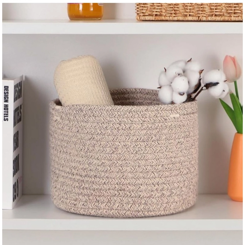 Cotton Round Small Storage Basket 9×7 Inch Pack of 1