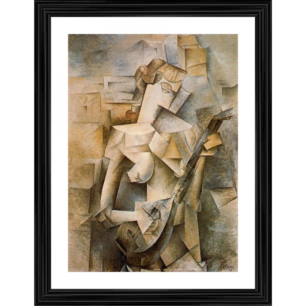 Girl with mandolin 1910 Painting With Wood Photo Frame