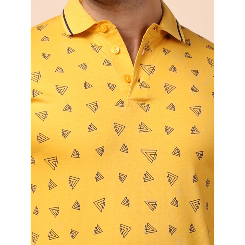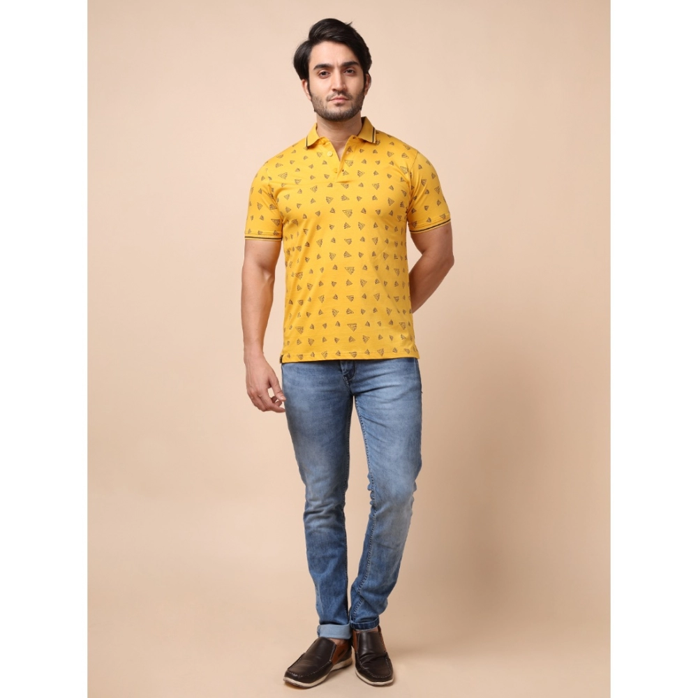 Generic Men’s Casual Cotton Printed Polo Neck Half Sleeve T-Shirt (Mustard)