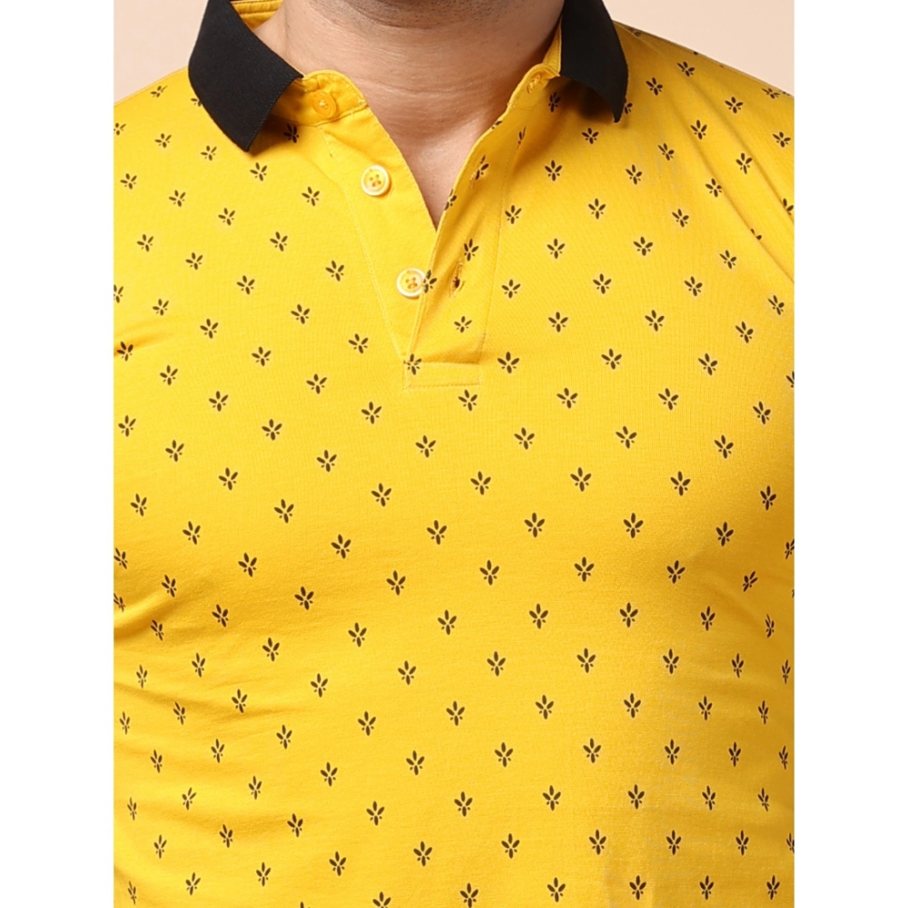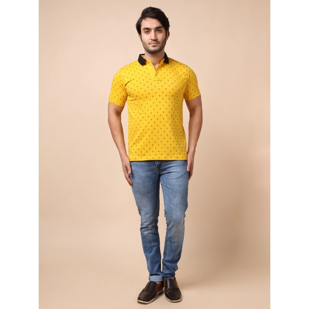 Generic Men’s Casual Cotton Printed Polo Neck Half Sleeve T-Shirt (Yellow)