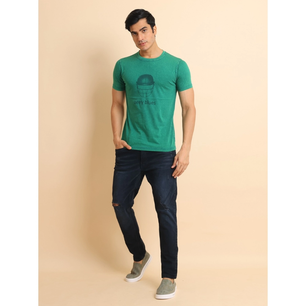 Generic Men’s Casual Cotton Printed Round Neck Half Sleeve T-Shirt (Green)
