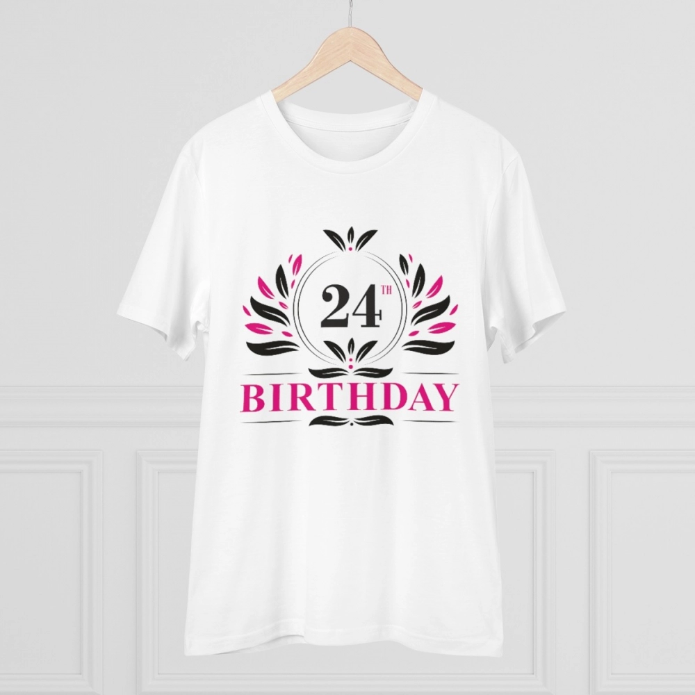 Generic Men’s PC Cotton 24th Birthday Printed T Shirt (Color: White, Thread Count: 180GSM)