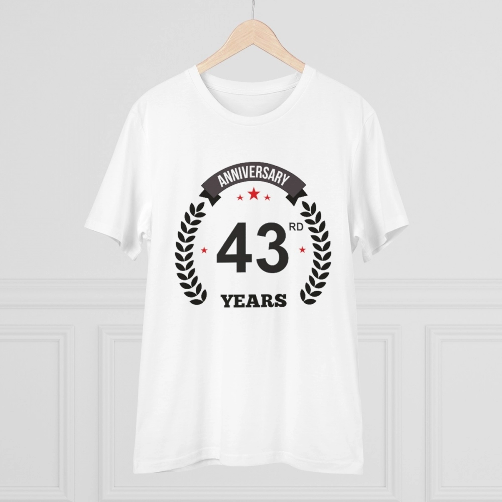 Men’s PC Cotton 43rd Anniversary Printed T Shirt (Color: White, Thread Count: 180GSM)