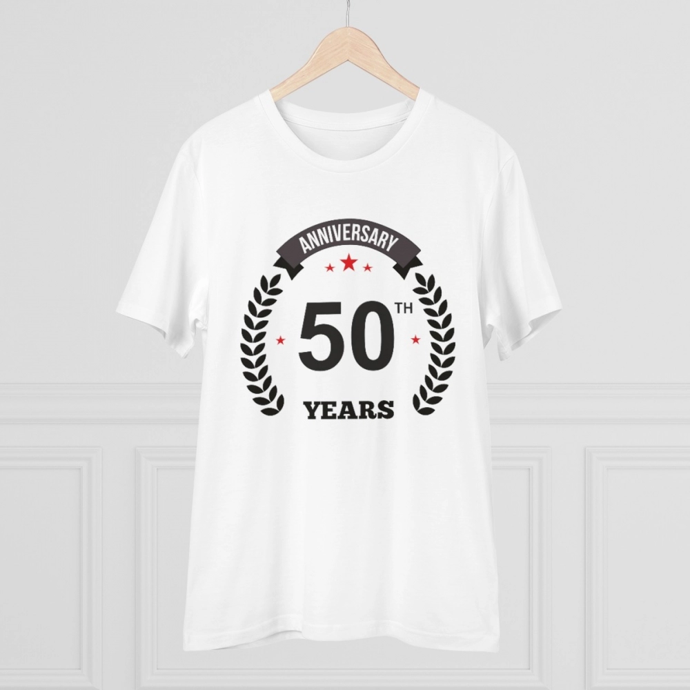 Men’s PC Cotton 50th Anniversary Printed T Shirt (Color: White, Thread Count: 180GSM)