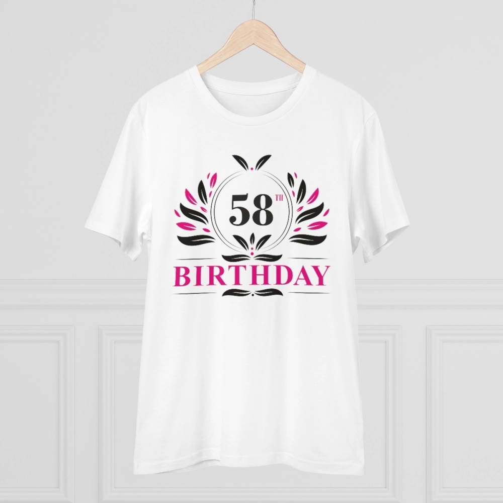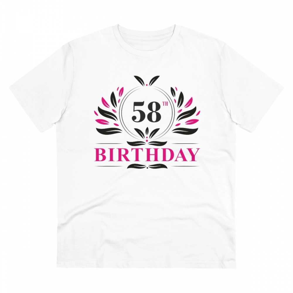 Men’s PC Cotton 58th Birthday Printed T Shirt (Color: White, Thread Count: 180GSM)