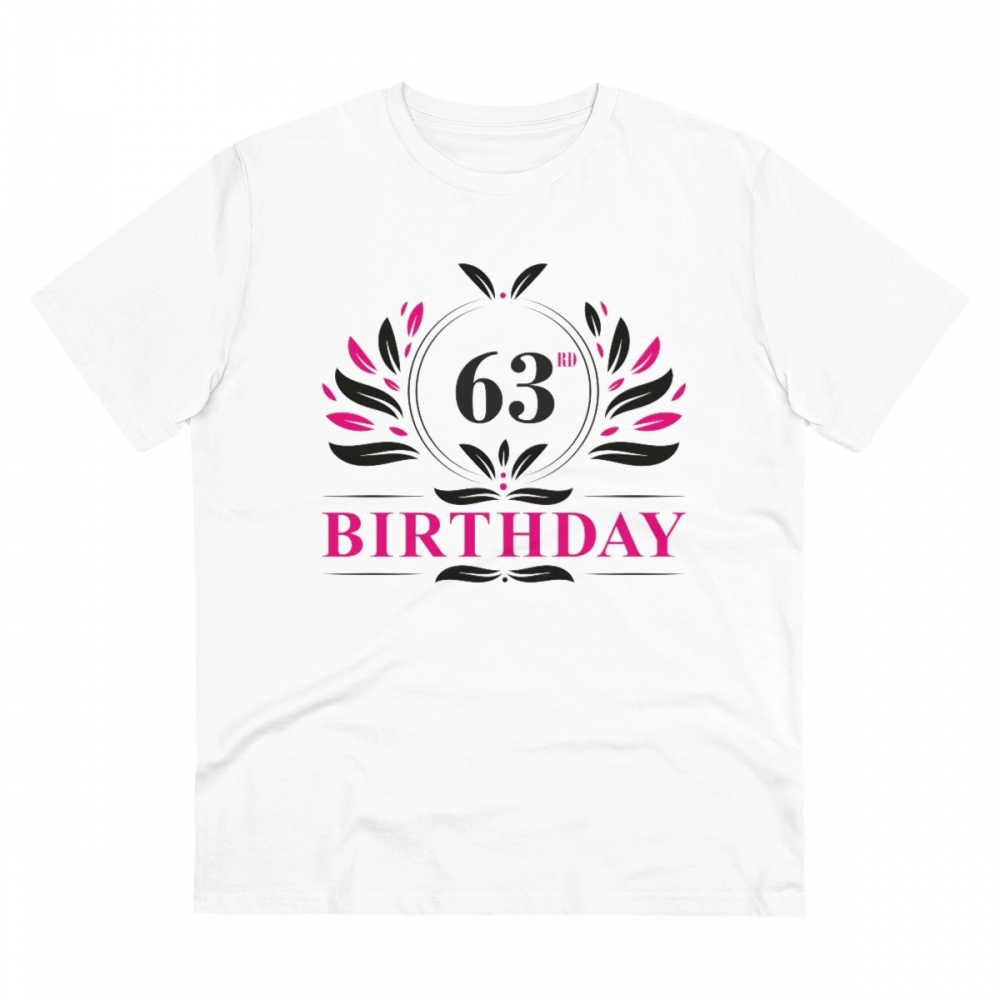 Men’s PC Cotton 63rd Birthday Printed T Shirt (Color: White, Thread Count: 180GSM)